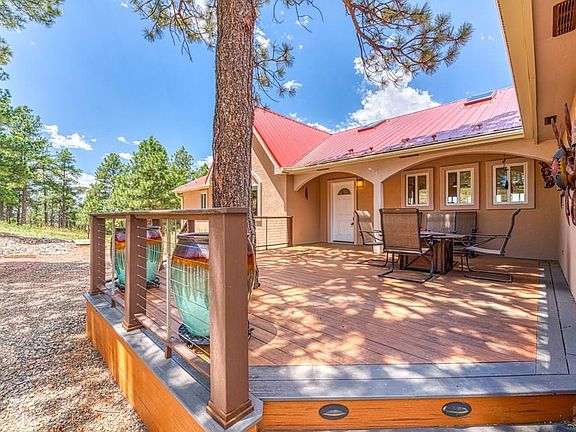 Discover your Private Oasis in Santa Fe Trail Ranch! Custom Ranch Style Home situated on a beautifully landscaped and manicured 35 acre lot in the Tall Pine Forest of Southern Colorado. Stunning Panoramic Views from Greenhorn to Spanish Peaks, Sangre DeCristo Range south into New Mexico! This Inviting Home with full walk-out basement is built into a natural berm with impressive stacked Stone/Rock Terraces offering privacy and seclusion. You will appreciate the low maintenance Stucco, Metal Roof, Timber Tech Decking, Leaf Guard Gutters, French Drains, the comfort of Central Air Conditioning and security of a Kohler Whole House Generator. Enjoy Mountain Living while only 30 minutes to historic Trinidad and it's amenities - City Water - Easy Year Round Access on Well Maintained Subdivision Roads - Close Proximity to I-25, Fishers Peak State Park & Trinidad Lake State Park - Abundant Wildlife! Call today to schedule your private tour and explore the possibilities!