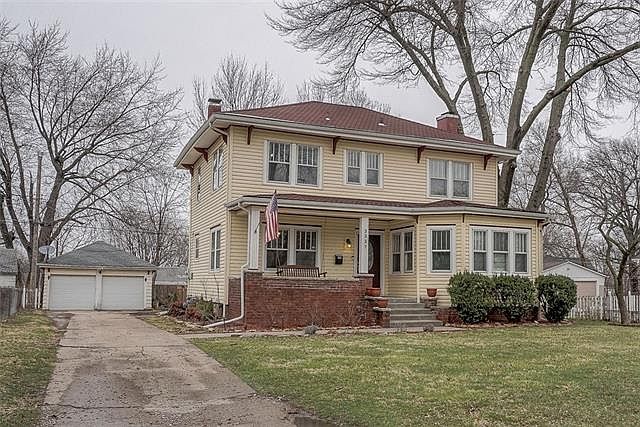 You'll love this well-maintained Craftsman Foursquare home loaded with style & charm! Relax on the front porch swing & enjoy the Spring flowers. This house boasts beautiful hardwood floors & woodwork throughout. Main floor features include an open living room with gorgeous fireplace and adjoining sitting room that’s flooded with light, an office space, updated kitchen with quartz countertops & stainless appliances, formal dining room, a mud room, laundry and full bathroom. The 2nd floor features a large master bedroom with dual closets, 3 secondary bedrooms and a recently remodeled full bathroom. There's plenty of storage with a full basement and a detached 2-car garage with new, insulated garage doors. There's also a fenced backyard with deck and patio for outdoor enjoyment. A new furnace and air conditioner are scheduled to be installed soon. You won't find a more warm and inviting home!