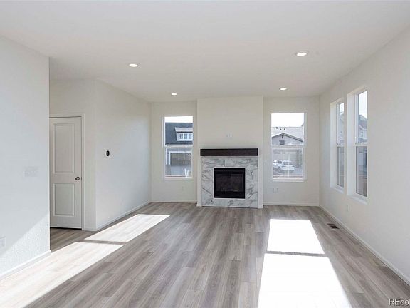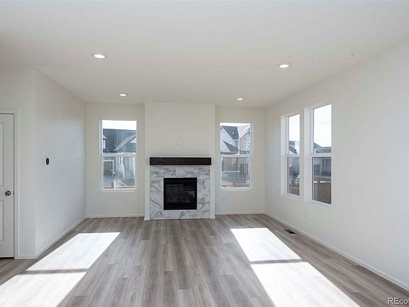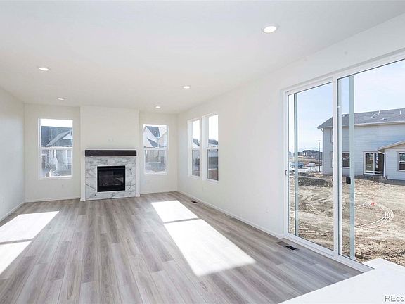 Welcome to your dream home in the Prairie Center neighborhood! This stunning 2-story, 3-bedroom, 2-bathroom residence features design elements that create a modern, elegant feel. As you step inside, you'll be greeted by the heart of this home, the stylish kitchen featuring modern dark espresso cabinets, complimented by gorgeous white quartz countertops with contemporary white subway backsplash tile. The open-concept living and dining areas provide a seamless flow and is perfect for entertaining guests or having a night in with family cozied up by the fireplace. The second floor boasts a large loft, perfect for another living area, office or whatever your imagination can think of. The large primary bedroom includes an oversized closet and luxurious primary suite featuring a walk-in shower with bench. This home offers not only a beautiful living space but also a prime location. Enjoy the convenience of nearby amenities, parks, and excellent schools, making it an ideal choice for families and professionals alike. The Listing Team represents builder/seller as a Transaction Broker.