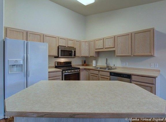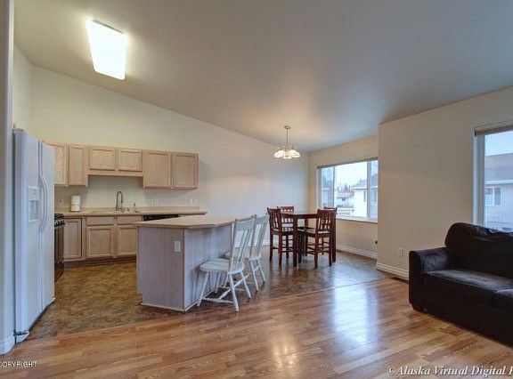South Anchorage Well Kept Townhome! This cute townhome is perfect for the first time homebuyer or just downsizing. LR w/lam flrs & cathedral ceiling offers an open & airy feel. Kit w/island work area, breakfast bar & upgraded stainless steel appliances. Lg MBR w/WI closet & semi private BA. Lwr lvl w/2 BRs, BA & access to fenced back yard. Freshly painted & move in ready!