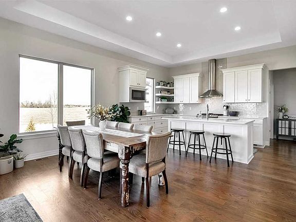 Welcome home to this gorgeous light-filled split bedroom ranch! The stunning entryway leads you into the living room where you will love the vaulted ceiling, gas fireplace and large windows showcasing the large covered deck. The kitchen boasts an island, a walk in pantry with a barn door, and another large window. The master bedroom is an amazing oasis with a vaulted ceiling, master bath with soaker tub and separate shower, and a master closet which leads to the laundry room. Bedroom two and three on the main level share a full bath. The finished basement offers a family room with gas fireplace and wet bar, along with two more bedrooms, full bath and plenty of storage. All of this plus a third car garage and an almost half an acre lot! Fontana offers a beautiful zero entry pool, walking paths, stocked lake, playground, and a beautifully landscaped parkway.