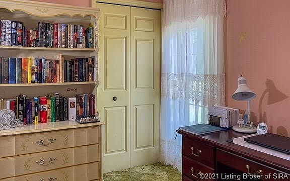 Rare find in city limits- one acre lot, no sub., no HOA, covenants or restrictions. One owner home. Three bed, 2 full baths. Large rooms. Open concept kitchen, breakfast room, family room. Creek at back of property. Lots of wildlife. Dead end road. Shopping and dining within walking distance. Less than two minutes to I-265. Fireplace in family room. Built in bookcase. Empty lots on both sides of home. Well maintained. Sq ft & rm sz approx.