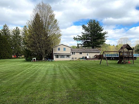 Beautiful updated home on 1.65 acre park like lot. Room to roam, neighbors are spaced out nicely and corn fields sit behind the property where you can watch the sun set from the stamped concrete patio/fire pit. Home has an open concept floor plan, kitchen/dining room look down to the large family room with fireplace. The eat in kitchen has granite countertops with stainless steel appliances. Off the family room is a sunroom that leads out to the patio/deck where you can swim or just enjoy the view. This home has an extra large laundry room with sink and clothes organizers. Go down another floor to the basement, great space for extra storage or to be finished in the future. Home has new siding, newer air conditioning, furnace and hot water tank. Closets have shelving from “closets by design”, 2 car garage, partly concrete drive. Country feel while close to major highways and necessities. Rootstown School district. Wonderful home for a family or couple. Move in ready.