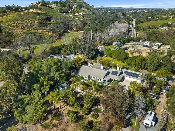 Craving some seclusion and peaceful vibes? Must see this gorgeous private, single level Fallbrook estate. Pride of ownership abounds as you tour this gated, 1+ acre property with an organic garden boasting an overflowing fruit cup of 15+ varieties of fruit trees, multiple scenic patios, 3 car garage, RV parking, detached artist studio, and room to add an ADU. Cozy up to one of three fireplaces, soak in the spa, or relax in the sauna. Owned solar and upgrades make this dream home energy efficient & kind to your wallet. Exhale and call for more details