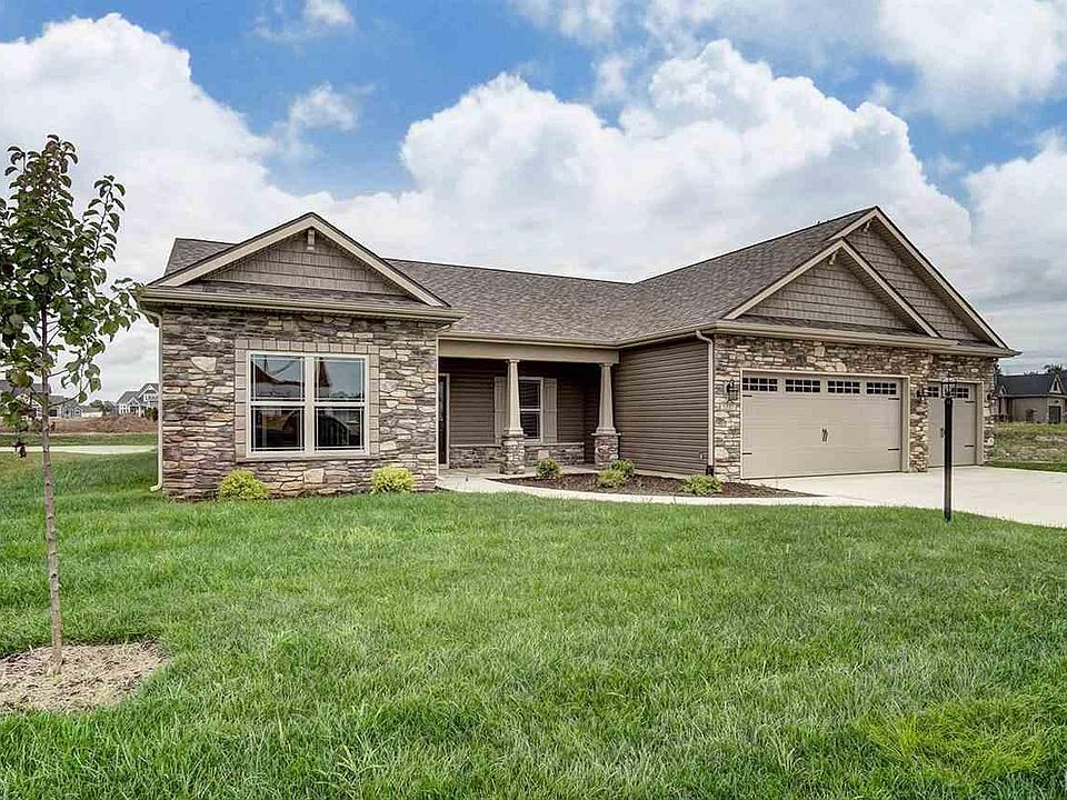 NEW Split bedroom, Open-concept Ranch w/ a Sunroom & Den, & extensive Covered Porch (ceiling fan & grill gas line) overlooking the Pond. Will be complete end of May! Built w/ pride by Majestic Homes, the Brittany III features Granite counter tops, walk-in pantry, staggered cabinets w/ crown molding, tiled backsplash, Frigidaire Gallery Stainless Steel appliances, breakfast bar, 24 x 12 ceramic tile floors, vaulted LR ceiling w/ gas log fireplace. Located in Mediterra, a popular SW Allen Schools subdivision, you are near I-69, shops, restaurants, schools, parks, & trails. This home is built w/ the strength & accuracy of an engineered open-web truss system (*squeak-free), HE Low-E Simonton windows, HE Thermatru doors, HE 50gal hot water heater, HE furnace & HVAC w/ return vents in ea. room (maximizes efficiency), spray foam AND batt insulation all exterior walls, & 1/2/10 RWS Builder warranty! The Private master suite has Trey ceiling, custom tile walk-in shower, soaker tub, cultured Marble dual vanity, large walk-in closet, & private comode. Conveniently located near master br is spacious Laundry room w/ counter, cabinets & additional built-in bench seat & lockers near garage entry. Front yard is Irrigated, landscaped, & sodded (backyard graded and seed). Other notes: custom shelving All closets, attic is floored for YOU w/ aluminum pull-down stairs, cultured marble vanities ALL bathrooms, LED lights in All can lights, Atrium patio door w/ interior blinds, water softener rough-in, 12" exterior overhang w/ perforated soffit, seamless aluminum gutters/downspouts, & more. Majestic is a quality builder that offers exceptional customer service. Come see for yourself!
