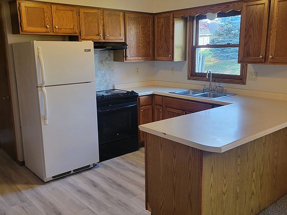 This unit has been freshly painted, with new flooring, and updated fixtures throughout. 2 large bedrooms,1st floor laundry, gas fireplace, 2 stall garage. Renter responsible for utilities, lawn care, and snow removal. Non-agressive pets allowed with non-refundable pet fee and extra monthly pet rent