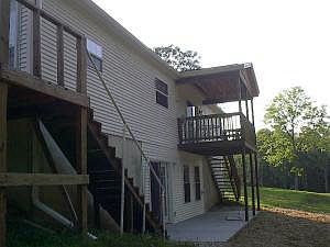 Beautiful view. This Three Br. Two Bath Ranch over a full Basement also has covered front and back porches, lots of cabinets,Fireplace,appliances and some furniture stays with home. Detached garage plus large work shop plus an extra mobile home hook-up.