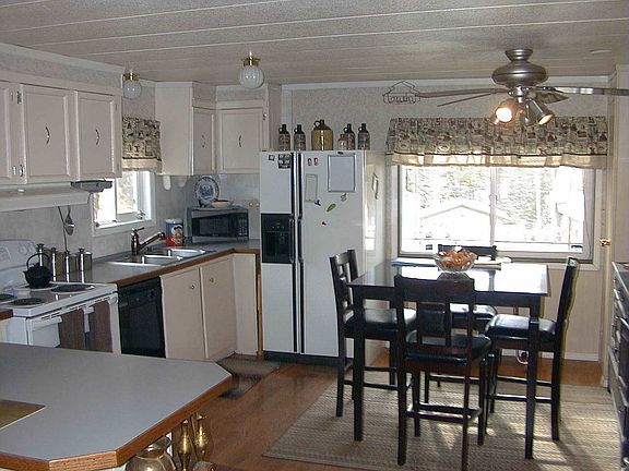 3 bedroom 1 1/2 bath Mfg. home with 10x30 addition large deck.Well kept, some updated Windows, pellet stove, kitchen appliances stay includes boat slip at private beach. Pellet stove, kitchen appliances stay, storage shed.