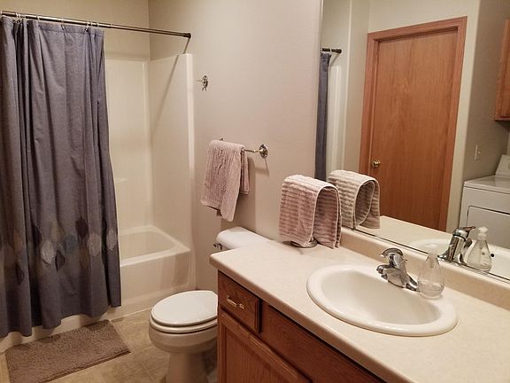 1 bedroom Breakfast Bar unit with decorator ledges, gas fireplace, vaulted ceilings, and located on a private street. No pets/no smoking. Additional $35/mo flat fee for water. Rent includes garbage, lawn-care, and snow removal. Other features include attached garage, washer/dryer in unit, microwave, dishwasher, garbage disposal, wall A/C unit, electric baseboard heating, and walk-in closets. Located near numerous retail stores, restaurants, schools, highway 93, and highway 53. Unit is available March 1, but an earlier move-in can be arranged. Additional 35$/mo flat fee for water.