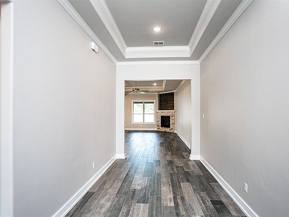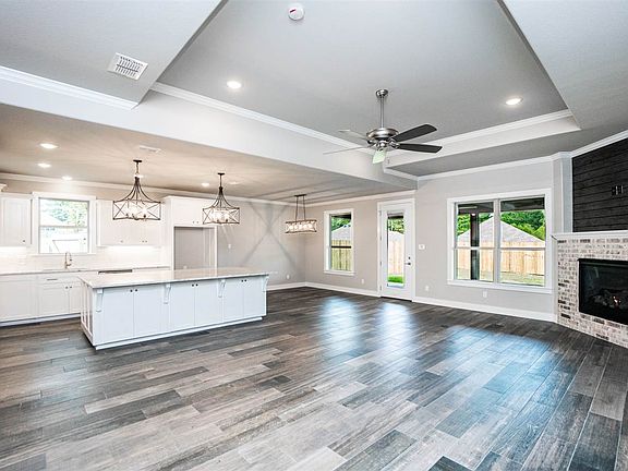 No waiting required! This home is brand new and ready for you to move in! The moment you walk thru the gorgeous front door you will notice the soaring 10 ft ceilings in the foyer extending to the living room, which goes to 11 ft. Three bedrooms, 2 1/2 baths with wood tile flooring throughout the main living areas. You'll love the trendy colors and light fixtures in this beautiful open concept home! The living area features a gas fireplace with stained shiplap over the mantel. The kitchen has beautiful granite, custom cabinets with soft close doors and drawers, over-sized island/breakfast bar with extra storage, a pantry with a sliding barn door and stainless appliances. This split bedroom plan offers privacy and the beautiful master suite, located near the laundry room, has a spa-like bathroom with a garden tub, large shower, separate sinks and a make-up vanity, along with an impressive closet! Large covered patio in the fenced backyard has gas for a future grill. HOA provides yard mowing front and back and the neighborhood backs up to the Long Park walking trail. Don't miss the virtual 3D tour!