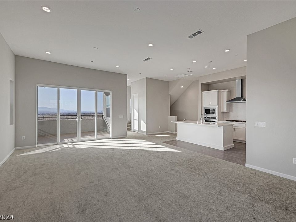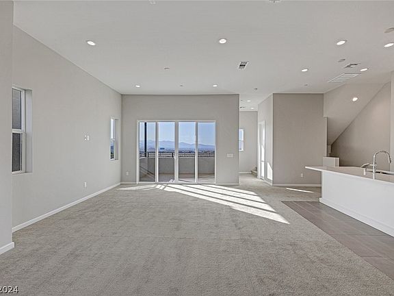 UNOBSTRUCTED STRIP VIEW from the living room, bedroom, and rooftop deck! Built in May 2024 by Toll Brothers, this immaculate home has never been lived in. HOA covers exterior, landscaping, water, and sewer bills, making it an ideal lock-and-leave home for World travelers. Separate entry ensuite is perfect for multi-gen living or complete guest privacy with 3 additional bedrooms on the second floor. Enjoy entertaining under the pergola-covered rooftop deck with stub for an outdoor gas BBQ and attached indoor loft with built-in wet bar and wine fridge to grab a quick cold drink while you tan. Centrally located within minutes to shopping, dining, grassy parks, walking trails, gated pet parks, water splash pads, Hospitals, the Raiders Headquarters, executive airport, and quick highway access for a 20 minute drive to The Strip. Easy living in this modern, low-maintenance, and new energy efficient home!