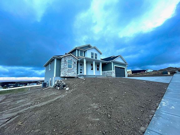 Attractive two story with main floor primary suite! Located in the beautiful Crestview Estates Community. Inside and out you will fall in love with this home. This home boasts a large open floor plan which is great for entertaining and a beautiful staircase leading up to three bedrooms and a custom bathroom on the second level. The main floor primary bedroom features a decorative tray ceiling with trim and large windows. The primary bathroom is sure to impress with the walk in shower, soaker tub, and plenty of space in the walk in closet. Kitchen features quartz countertops, undermount sink, large island/bar, trash can roll out, soft close cabinet doors and drawers. 9' ceilings in the basement with a finished family room and potential for another 2 bedrooms, bathroom, and a flex room. Home includes a high efficiency LED lighting package and standard smart home features.
