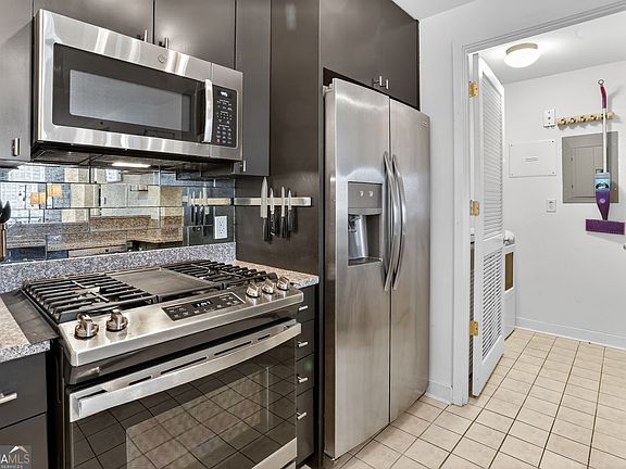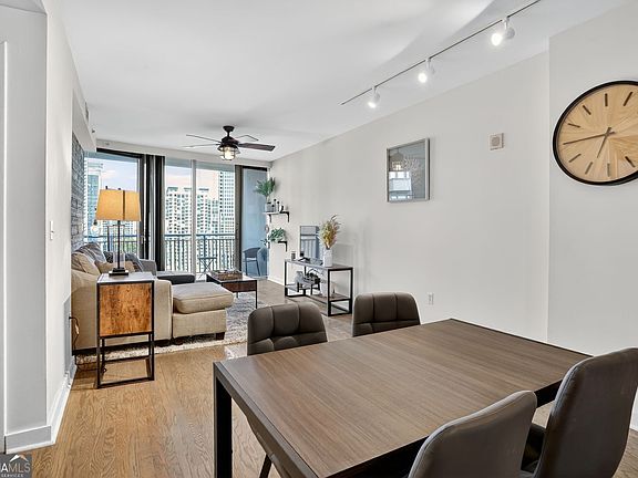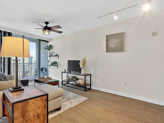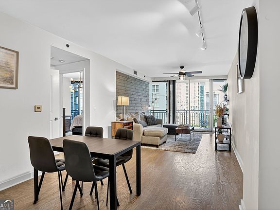 Luxury living in the heart of Buckhead! Highly sought-after 1 bedroom, 1 bathroom floor plan located on the 17th floor of one of Buckhead's most prestigious condominium buildings. Enjoy breathtaking panoramic views of Kennesaw Mountain, Stone Mountain, and the Atlanta skyline from the double balcony - perfect for entertaining or relaxing at sunset. This upgraded unit features hardwood floors throughout, a designer architectural wall in the living room, kitchen with granite countertops, gas cooktop and stainless-steel appliances, mirrored backsplash, and a private wine cellar. The open layout offers an ideal balance of spaciousness and comfort. Resort-style amenities include a Sky Lounge with bartender service, saltwater pool and pool bar, European spa, private massage room, yoga studio, guest suite, 24-hour concierge, doorman/porter, grilling and hosting area, club room, pet walk, covered garage parking, and on-site management, housekeeping, and maintenance. Unmatched luxury, unbeatable location - one of the best buildings in Buckhead at this price point!