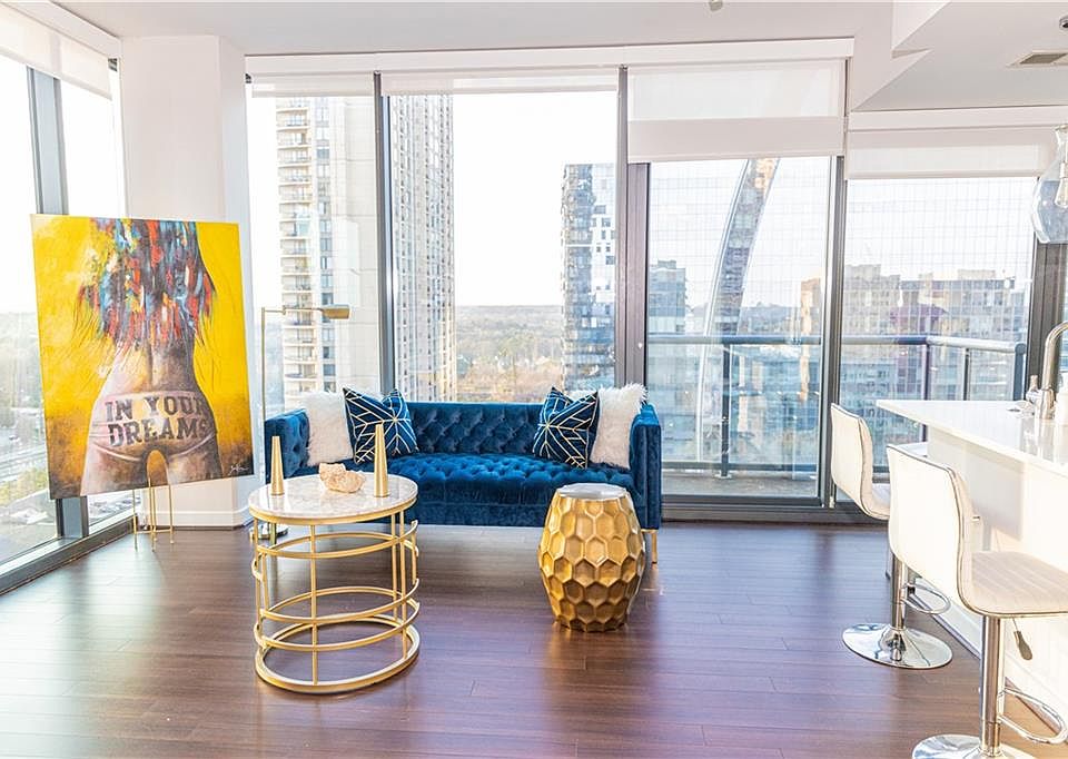 Buckhead FURNISHED Condo! Right across the street from Lenox Mall, will only be on the market for a few days! Walking distance from Phipps Plaza and several restaurants and attractions on Peachtree Road. This residence is designed with upscale finishes such as wood-style flooring, quartz countertops, stainless steel appliances, floor-to-ceiling windows, and private walk-out balconies that offer sweeping city views. Utilities included (except for light bill ). 23-story luxury high-rise community located in the heart of Buckhead, Atlanta. Built in 2015, the property features 329 units ranging from studios to spacious two- and three-bedroom penthouses. The community is packed with resort-style amenities, making it a vibrant living space for professionals and families alike. You can enjoy a resort-inspired pool with in-water loungers, cabanas, outdoor kitchens, and landscaped entertaining terraces. There is also a bocce ball court, cyber cafe, modern clubroom, and a fully equipped fitness center with dedicated spaces for yoga, spin, and aerobics. Pet owners benefit from a dog park and a pet spa, while commuters have access to a multi-level parking garage with EV charging stations and direct proximity to the Buckhead MARTA station. Right off 400, quick interstate access! The building places strong emphasis on security and convenience. The building offers controlled access through key fobs and electronic systems, concierge services in the lobby, and a controlled access parking garage. Video surveillance and camera monitoring are also part of its safety measures, helping residents feel secure in a bustling urban setting. While most praise its central location, luxury finishes, and high-end amenities. Overall, Cyan on Peachtree combines modern design, resort-level features, and urban convenience, making it one of Buckhead's most recognizable high-rise living options