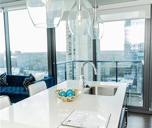 Wood-style flooringSweeping city viewsFloor-to-ceiling windowsLenox mallStainless steel appliancesResort-inspired poolQuartz countertops