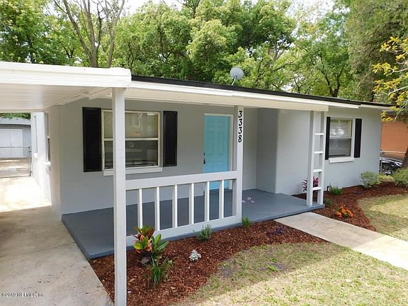 Adorable concrete block home in desirable Murray Hill Heights area, with an attached carport to protect your vehicle from the harsh Florida weather. Front porch is very inviting, and the backyard is overlooked by a huge screened-in porch, and contains two good-sized sheds. One could be a tool-shed/workshop and the other used for storage. Whatever your heart desires. The exterior of the home has recently been painted a beautiful/trendy grey with white trim. When you walk inside, you're cooled down by the brand-NEW air-conditioning unit and surrounded by freshly painted walls. Kitchen includes refrigerator, stove and microwave. The home has a bonus room with its own separate entrance and a full bath. Could be used at a master bedroom, a mother-in-law suite or entertainment room.