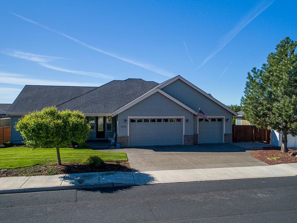Cascade View Estates stunner! Single story home boasts 3-car garage, luscious landscaping and an expansive deck. Step inside to discover unique features, such as French doors and multiple built-ins. The luxurious kitchen has many upgrades including stone counters, stainless appliances, tiled backsplash, contemporary hardware and beveled cabinets as well as a pantry. The idyllic master bedroom showcases a tray ceiling, walk-in closet and ensuite featuring a soaking tub, double vanity and tiled shower. Rounding out the interior is a gas fireplace, utility room w/sink and ample storage as well as multiple sliders to access the huge deck. Take in mountain views on the deck and notice fruit trees in your own backyard. If it gets too warm, take note of the shade that pulls out to cover a portion of the deck. Space is abundant in this home and the oversized garage is no different and includes built-in storage features. Finally, home has a gas furnace, central vac and is wired for a hot tub.