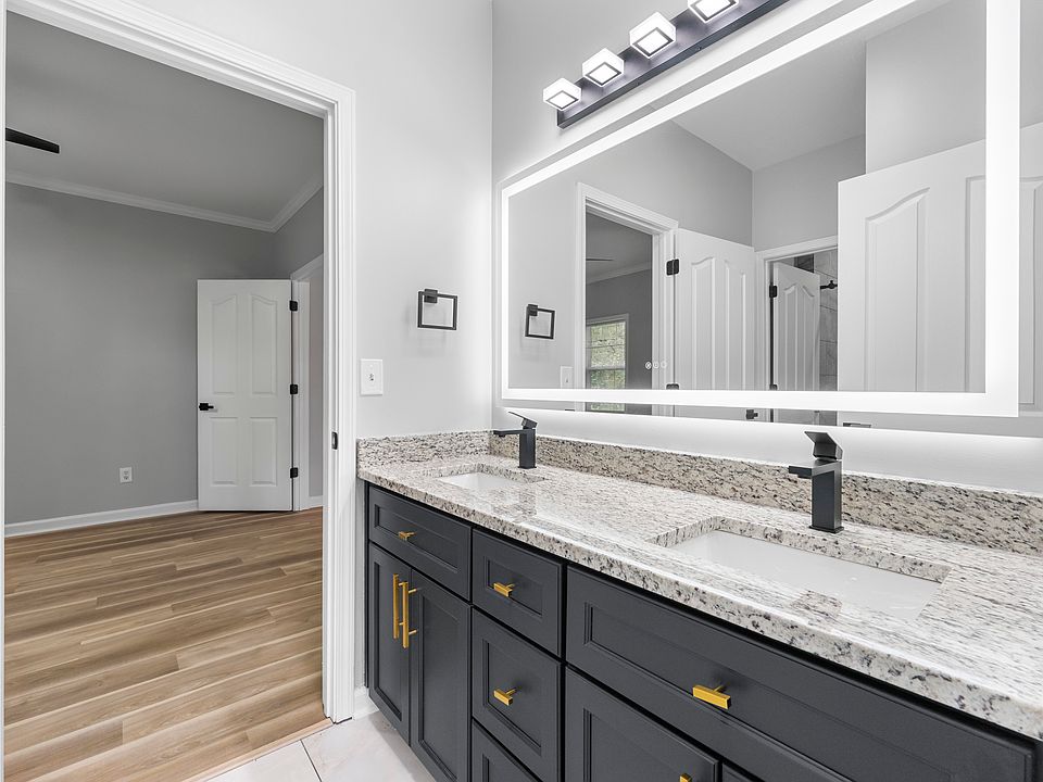 Upstairs, the spacious primary suite includes a private bathroom with dual vanities and a generous closet. Two additional bedrooms are ideal for family, guests, or a home office. A full second bathroom upstairs and a convenient half-bath on the main level provide easy access for visitors.