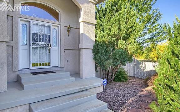 Stunning move-in ready stucco ranch home in a golf community and backs to an open space. Welcoming covered front porch that opens to a bright and spacious entryway, formal dining room with a wet bar and a double sided gas fireplace that opens to the walk-out great room. The cheerful gourmet kitchen has loads of storage space, walk-in pantry center island with a cook top and counter bar, work station, butlers pantry and large windows that bring in natural light. Main level master bedroom features a coffered ceiling, large Walk-in closet as well as a secondary closet, adjoining five piece master bath with a soaking tub and an oversized shower with two shower heads. A laundry room with storage and sink and a powder room complete the main. The lower level features a family room a pool table and wet bar, theater room with speakers and a fireplace, office with built-ins and a gas fireplace. Three additional bedrooms and a spacious 3/4 bath complete the lower level. Extra features: Private patio to enjoy the beautiful Colorado evenings, A/C, great hiking trails nearby, just a quick walk to the Colorado Springs Country Club and so much more. Don't miss this one!