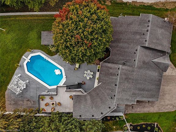Sophisticated simplicity with fresh air living and simple pleasures. Only 25 mins to London. This casual elegant home is ready to entertain at a moment's notice thanks to its open floor plan that flows freely between indoors and out. Layers of wood tones add depth and texture while keeping the whole palette simple and earthy. Home boasts of soaring vaulted ceilings with the entire east wing master suite with walkout to a terrace overlooking the salt water pool and beautiful property. Main floor office open kitchen with granite counter tops and a beverage bar with instant hot water unit, dining room, living room and games room. Main level leads to the salt water pool with extensive concrete decking and workshop with double entry and exit with heated floors. Lower level has a family room, second kitchen and guest bedroom with full ensuite. A home that extends an invitation to relax and exhale.