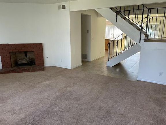 Townhouse styled two story, Large Livingroom with fireplace, semi upgraded kitchen, a huge dining area with a 8 foot slider door which leads to a private fenced patio/yard and an oversized 2 car garage, a separate laundry room for washer and dryer hook ups off the kitchen, Upstairs is 3 bedrooms or 2 bedrooms plus den/office, master bedroom has a walk in closet. Submit ONE small pet. The owner pays for water and trash