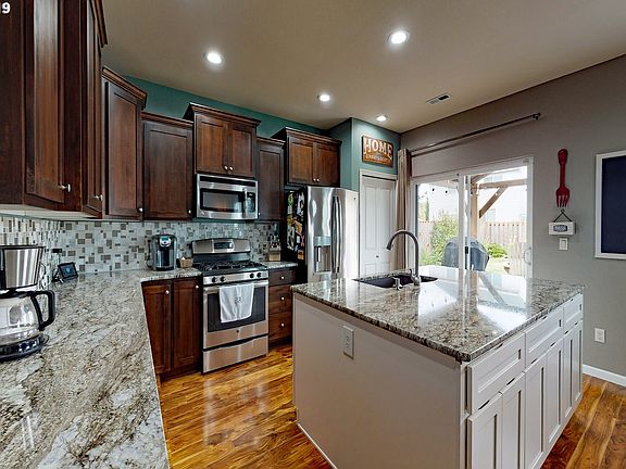 Upgrades Galore! This spacious 4 bedroom home features an open floor plan w/ gas fireplace, main level den, new interior paint and laminate flooring through-out. The kitchen is a stunner w/ huge island, pantry, granite slab counters, & SS appliances. The spacious master suite boasts dual vanities, soaking tub, & walk-in closet. Outside you will find 2 sheds, fenced yard, covered deck (perfect for entertaining) & sprinkler system
