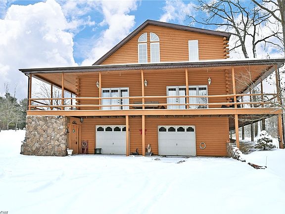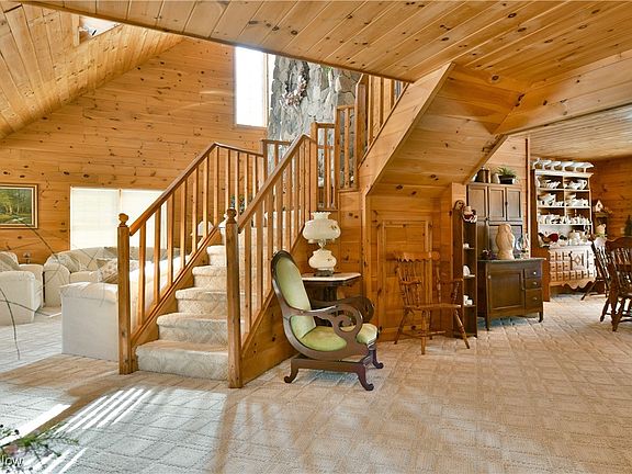 Find your own slice of woodland paradise with this breathtaking Fowler residence, bringing log cabin styling and pairing it with masterful craftsmanship that spans an expansive four-bedroom layout across three floors of finished living space! A winding driveway cuts through the tall trees as it runs past a babbling brook and impressive, rustic barn to find the home perched high on a raised lot. Gorgeous, cobblestone trim wraps the lower level as it opens to find the attached lower garage bays. Meanwhile, a covered porch wraps around the exterior of the residence, overlooking the scenic hillside and waterway. Engaging cabin styling brings you through the double entry doors to find a remarkable foyer. The spiraling wood staircase rises along the towering stone mantle, revealing the relaxing living room below. Sunshine spills from the tall, vaulted ceilings as carpeted flooring runs underfoot. Warm woodwork flows through the main floors, continuing into nearby dining and family room areas. At the dining room, a pass-through fireplace transcends the remarkable kitchen, brimming with country style and captivating brick work. Casual dining oversees the rear patio. Completing the level, a large guest bedroom joins a lovely bath and its clawfoot tub. At the upper tier, an elevated lounge joins a pair of oversized bedrooms and a must-see full bath with stone lined jacuzzi style tub and glass stall shower. At the lower level, a bonus room accompanies laundry, utilities and an additional fireplace adorned living room, making for an easy secondary suite. Call today!