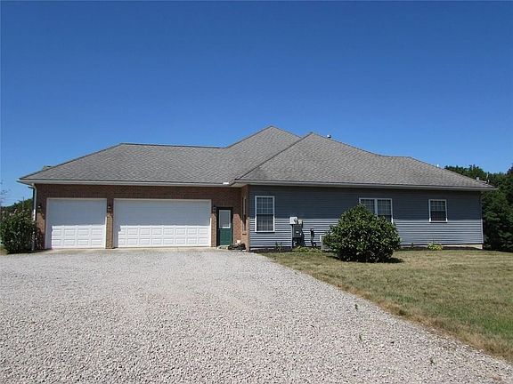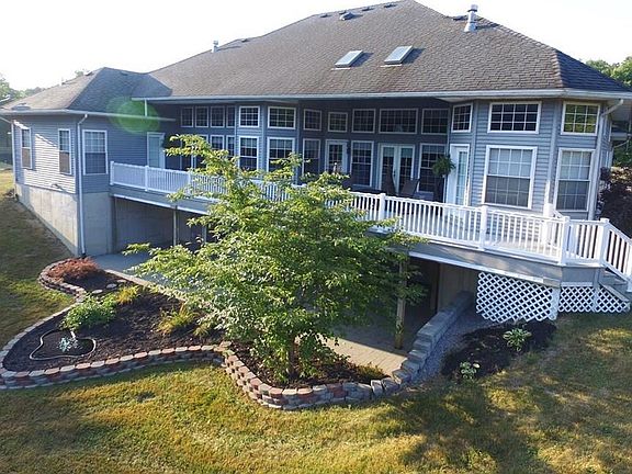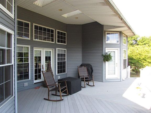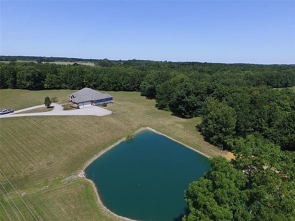 Stunning setting & amazing 4 BR, 3 BA home with 3 car garage on 8.931 scenic acres! Interior features 14 foot ceilings in the living room, family room, entry, & kitchen, scenic windows in every room facing the backside of the house, formal dining room, large eat in kitchen with solid surface countertops, vented gas fireplace, quiet office space, massive unfinished basement with an easy 4th bath (75% complete), & a master suite with private fireplace, 2 walk-in closets, large bath with separate vanities and beauty station! Exterior features large elevated composite deck across the backside of the home designed for outdoor living space, lower patio area, pond with small beach, & scenic wooded ravine along the north side of the property!