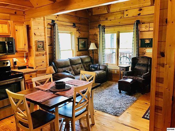Extremely nice cabin in Smoky Mountain Ridge. Never on rental however would be a good one (has been vacation home only). Cabin shows extremely well, basically looks like new. Very tasteful throughout with custom light fixtures, even the bathroom sinks are pottery basins. Located in a super location within the community. Easy access, within very close walking distance to the beautiful community pool, private deck backs to a woodland area. Community is very well maintained and landscaped. This one will not last long. Take a look and compare you will see why this one is special.