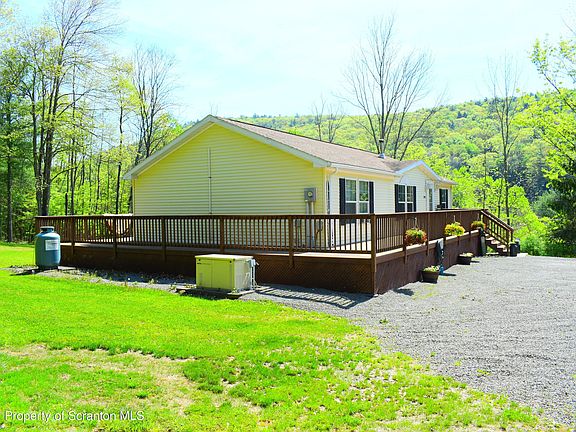 Nicely maintained modular Ranch home on 9 acres of mostly wooded acreage with wonderful views. Property features newly installed septic system, wrap around deck, detached garage, generator, gazebo w/ electric and more. Comfortable setting inside with master suite area, great kitchen with lots of storage, laundry on main floor, new flooring on main level ,beautifully finished lower level and half bath, walk out to side yard. All rights convey!
