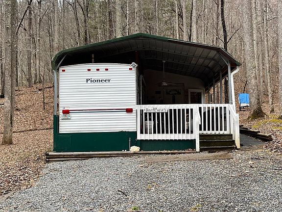 PEACEFUL & SERENE NORTH GEORGIA MOUNTAIN GETWAY WITH A BABBLING BROOK!! This property offers a 2007 Pioneer camper with metal carport, porch area, bunk room, laundry room, barn/workshop! Septic & private well! Plus a great location that is close to Lake Chatuge, Hiawassee & Hayesville. Address is Hiawassee, GA, but property is located in Clay County NC.