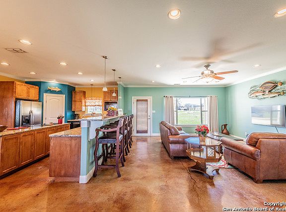 Here's a Home Run!! 4/2/2 Luxury Stone Home** 6.29 Ac of Cleared, Easy to Maintain Grazing Grass...Fenced/Cross Fenced** Quite Country Living-5 minutes from La Vernia HEB!!** New Paint Exterior** Standing Seam Roof** Open Floor Plan w/ Natural Light...High Ceiling, Rounded Corners, Crown Molding, Designer Paint** Dream Kitchen w/Custom Cabinets, Granite Counters, Recessed Lighting, Island** Spacious Master Suite, Walk in Shower, Double Vanity, Large Walk in Closet**Convenient Location-Come See for Yourself!