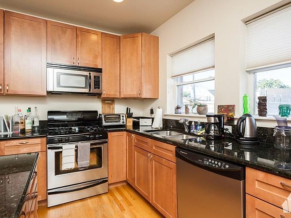 $2250 for the first 6 months; $2400 for the last 6! Total of $900 in savings for this AMAZING space! Parking INCLUDED! Spacious, light-filled 4-story townhome with 3 bedrooms and 2.5 bathrooms! Tons of space! Floor-to-ceiling windows allow for gorgeous natural light. Kitchen and living area features an open floor plan perfect for entertaining. Hardwood floors throughout the main level, including the kitchen! Kitchen also boasts a large center island, stainless appliances and granite countertops. Third floor features a full bath, two bedrooms, ample closet space and laundry. Penthouse master-suite expands the entire top floor with outdoor access to balcony. Enjoy the cathedral ceilings, large custom walk-in closet and en suite master bath! Additional highlights include attached over-sized garage plus additional 2nd parking space in front of garage. Large fenced in private patio/yard. Close to 90/94 and many other public transportation options.