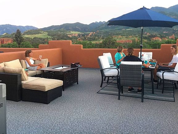Large, open three story 2864 sq ft townhome with additional 1000 sq ft rooftop deck, 2-car garage, 3 bedroom with private patios each with own full bathroom, (pets negotiable) nestled within walking distance between Old Colorado City, Manitou Springs, Garden of the Gods, and Red Rocks Open Space Park. Sunsets behind Pikes Peak are breathtaking from the rooftop deck with grill, firepit, hammock, outdoor dining and seating area. Enjoy hiking, biking, restaurants and plenty of site seeing from this Westside home. Two-car garage for toys and plenty of parking onsite. Price is unfurnished except rooftop deck. Inquire about furnished rental price. Renter is responsible for utilities (gas, water, electric, sewer) and internet. Owner pays for garbage/recycling (pick up is 7 AM on Fridays). Average price range: Utilities range from $250 - $300/month and internet is variable depending on provider (~$80/mo).