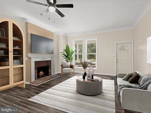 Enter this newly renovated semi-detached home through the front porch and into the main level, where you'll experience architectural details and many updates. Upon arrival, you're greeted by a gas-burning fireplace with ornate trim and a brick surround, dental molding, and sconces, creating a warm and inviting atmosphere. The luxurious laminate plank flooring and crown molding guide you through from the living room and into the dining room, flanked by classic columns, chair railing, and double-trim crown molding. The spacious kitchen offers abundant counter space with quartz counters, sleek appliances, ample storage, access to the rear deck for relaxation or gatherings with family and friends. Ascend to the upper level to find two bedrooms, one with plush carpeting, high ceilings, and a dual-entry bath that flows into the primary bedroom, which also features a walk-in closet and gorgeous modern flooring. The penthouse level offers three sizable bedrooms with plush carpeting, high ceilings, and a hall bath for convenience for guests and occupants. Major commuter routes include US-40, I-83, and I-95. Updates: Upgraded millwork, Fully remodeled 2024, Central a/c, Ceiling fans in every bedroom, New appliances, New windows, Electrical updated 2023, Permits as required, Recently coated roof, New water heater 2024, Kitchen countertops - Quartz, HVAC 2024