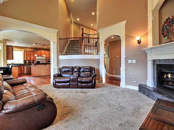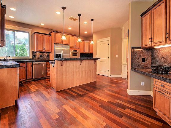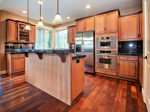 Gorgeous, Custom 4 bedroom +Den home with fabulous finishes crown molding, extensive millwork, Brazilian cherry hardwood floors with artistic inlays, granite & marble counters throughout, stainless steel appliances, gourmet kitchen with plenty of cabinet space and a walk in pantry, formal entry, dining and living room with gas fireplace. Large family room with gas fireplace, vaulted & coffered ceilings, private master balcony with peek-a-boo river & territorial views New carpet and HVAC. Extensive landscaping in a nicely fenced yard with calming water features. Large partially covered deck for entertaining Executive-style home only 30 minutes to PDX.
