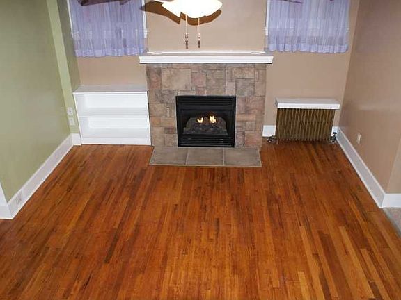 This Two-story home features Brick and Frame exterior, Asphalt roof, 2 car Detached Garage, Hard Wood and Ceramic Tile and Wall to Wall Carpet floors, 1 fireplace, Gas and Hot Water heating, Window Air Conditioner cooling, 3 bedrooms, 1 full bathroom, Automatic Garage door opener, Gas Stove, Refrigerator.