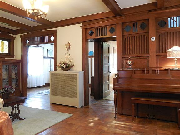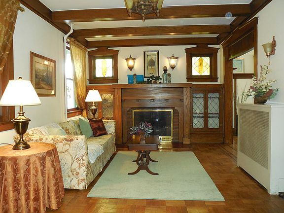 This warm and inviting home, with a vintage flair, welcomes you to the village of Ridgefield Park. Inlaid parquet floors, gorgeous chestnut trim and antique light fixtures give the home old world charm. Begin your day on the sun-drenched enclosed porch. The side to side living room with fireplace, leaded glass built-ins and stained glass opens to the dining room and kitchen offering a wonderful flow. 3 bedrooms, a full bathroom and stairs to attic storage complete the second level. Downstairs you will find plenty of room for storage, a laundry area and water closet. Leave you cars in the driveway and hop the bus to NYC on the nearby corner. At the end of a long day relax in your “secret garden” complete with Concord grape vines or watch the sun set from the rear landing. This wonderful home has been well maintained by its 3rd owner with a newer boiler, chimney liner and sewer line. Don’t miss the opportunity to enjoy life in this special home!