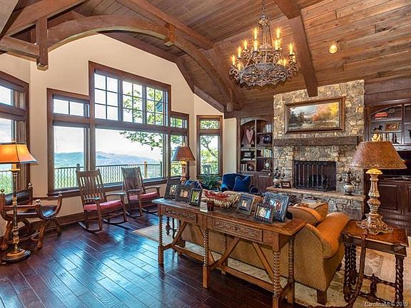 Spectacular home, Incredible views!! Great room with vaulted ceiling, dining area and kitchen are all centered around a massive stone fireplace, and all have a long range mountain view west to sunsets and towards the Great Smoky Mountains. Large kitchen features Viking, Thermador and Bosch appliances, a gas range, double oven and butler's pantry. Master bedroom also has western views and a large bath with shower, soaking tub, dual sinks and counters, plus vanity cabinet. Two car garage allows easy entry to main level through mud room. Laundry has additional sink and refrigerator. Three addition bedrooms on lower level, each with a bath. Game room is large enough for pool table, shuffleboard table, beverage area and wet bar, and seating around the fireplace. Complete home theater with plush seating for 12 . Large decks on main and lower level. Beautifully landscaped. Exquisite Furnishings are included, Full Golf Membership, 2015 Cadillac SUV and Wine in Wine Cellar all included!!!!