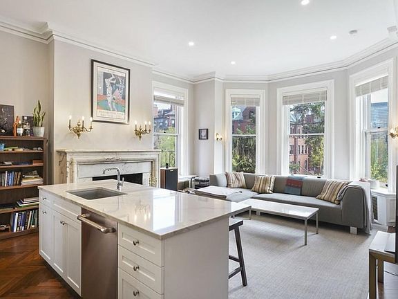 Located in the heart of the prestigious Back Bay, full of high end shopping on Newbury Street, five star dining and world famous parks like the Boston Common and Public Garden. This large one bedroom is on the sunny corner of Beacon and Fairfield. The renovated kitchen features gorgeous cabinets with ample storage, white subway backsplash, stainless steel appliances and a large island creating an open floor plan between the kitchen and living room. The living room features a fireplace and large bay windows facing Beacon Street allowing for an abundance of natural light. The bedroom has two closets including a large walk-in closet. The updated bathroom features a subway tiled shower and glass enclosure. Additionally, the living room, kitchen and bedroom have gorgeous herringbone hardwood flooring throughout. The building also features a laundry room in the basement.