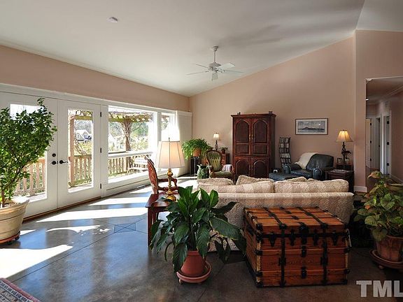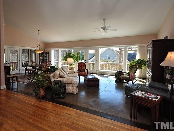 Wonderful one story, 3 bedroom, 2 1/2 bath custom solar passive designed home in Chatham Forest Ridge. This beautiful home was built with high end finishes throughout including tinted concrete flooring with radiant heat & wide plank hardwoods. The open floor plan living & dining areas are well suited to entertaining as well as comfortable daily living. Chef's kitchen & central vacuum. This home is surrounded by covered porches, extensive decking & a screened porch overlooking a wooded scenery.