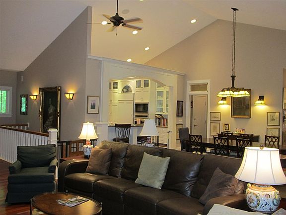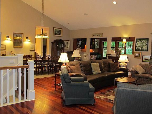 Charming newer ranch home, built in 2001 with 3BR/2.5BA. Open floor plan, split bedroom plan, cathedral ceilings, beautiful wood floors, gourmet kitchen with granite & tile, gas cooktop, 2 sinks. Gas fireplace, entertainment room with wet bar, refrigerator, cooktop & wine fridge conveniently opens to newer Trex deck and outdoor living. Delightful outdoor fountain in very private backyard. Daylight basement with egress windows is pre-plumbed - ready to add extra bedrooms & living space. Bonus room.