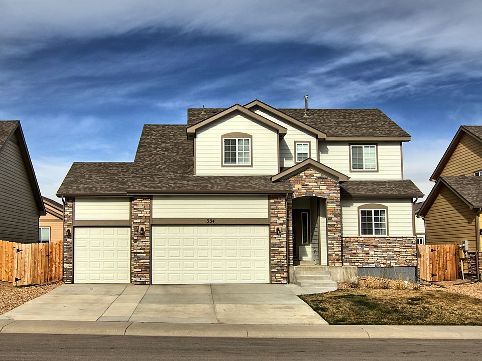 Beautiful 2 story home in Corbett Glen with over-sized 4 Car Garage with 8' doors. Built in 2016, this home is spotless!. Granite counter tops with under mount sinks, soft-close cabinets, wood floors, stainless appliances, custom 2" faux-wood blinds. High-efficiency furnace with a whole house humidifier. There's a main floor study/den. Unfinished basement with 9 foot ceilings, 2' x 6' construction with a bath rough-in. Master bedroom features large closets, his and hers sinks, a tub and shower. The spacious secondary bathroom upstairs has two vanities and sinks and bedrooms 2 and 3 have walk-in closets. Nice yard with sprinkler system, patio, and 6' privacy fence. Minutes from Hwy 34, 85 and I-25 makes commuting easy. Transferrable 2:10 Home Warranty from builder.