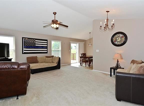 This...This is your new home! Fantastic Vaulted Great Room Ranch with over sized 2 car garage. Walk out lower level with 9 Foot pour, full bath rough-in, which also backs to Common Ground! Natural sunlight provides a bright open Kitchen with Newer Appliances, Built in Microwave, Good Sized Pantry, and Breakfast Room. Head out to the spacious deck ready for entertaining friends and family or just relaxing in the evening. Vaulted Master Bedroom with walk in closet, ceiling fan, and elongated vanity in Master Bathroom. Enjoy two extra bedrooms with larger closets. Subdivision offers walking trails, gazebo and basketball court. AWESOME Location with Super easy access to 364 and 40! Close to shopping, restaurants, schools and parks! Hurry, Hurry before this cozy home is "SOLD"!