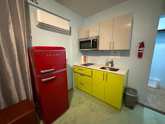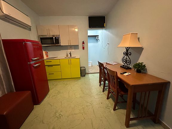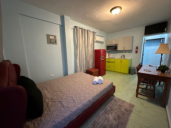 Studio/1 Bathroom Apartment with 1 queen beds in San Juan. Fully equipped with kitchenette, fridge, 2 burner stovetop, a/c, furnished and utilities included. 1 Bedroom/1 Bathroom Apartment with 1 queen beds in San Juan. Fully equipped with kitchenette, fridge, 2 burner stovetop, a/c, furnished and utilities included.