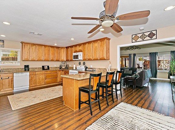 Stunning 4 bedroom 3 bath home now available and centrally located in Walnuts award winning schools, all within walking distance. This home is in move-in condition with 2 MASTER SUITES! 3 bedrooms downstairs and a Master retreat upstairs with a recently upgraded bathroom, crown molding, recessed lighting, built in cabinetry and two closets. The downstairs rooms offer built in cabinets, remote control ceiling fan with lights. The downstairs master has built in cabinets and a closet as well. The kitchen is updated with granite counter-tops, gas stove, above counter microwave and tons of storage and counter-top space for entertaining. There is an additional family room with a recently upgraded gas fireplace, built in shelving and LED lighting, vaulted ceilings with plenty of windows for natural light. This room exits out to the covered patio, fan, natural gas fireplace and last but not least an amazingly large pool for summer entertaining with family and friends. Backyard also offers palm trees, bird of paradise, and plumeria plants giving this backyard its oasis feel. The house offers central HVAC, tile roof, laundry area and soft water hook ups ready to go, double pane windows. Extended driveway offering ample parking is just perfect for RV parking or Boat parking. Palm trees and 2 fruit trees in the front offer lemons and pomegranate. This house is in a quite neighborhood with local stores within walking distance close to parks and trails for spur of the moment adventures.