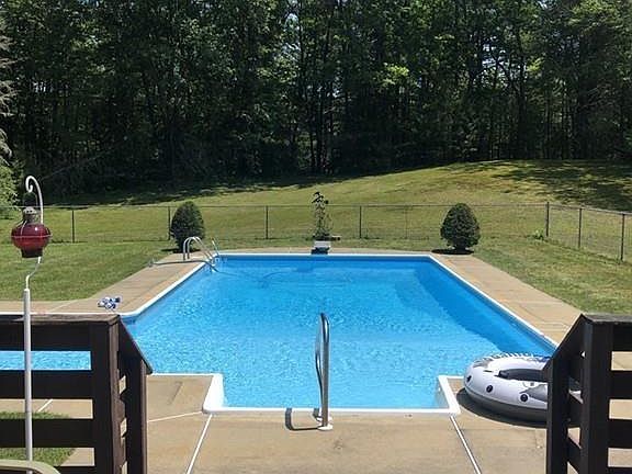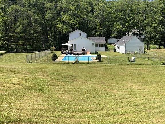 This beautiful home set on a quiet, country road is the perfect place to be after a long day. The first floor offers a very large eat in kitchen that is open to the living room, which features a gorgeous bay window. Around the corner you'll find the master with attached bath that includes a steam shower for relaxation, a laundry closet and a family room with french doors that lead out onto a deck and into the in-ground pool area. Upstairs you'll find two bedrooms with hardwood floors and a cozy office. All of this on almost two acres. No need to do a thing, just move right on in!