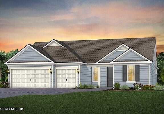 Step into the expansive Stellar, a beautifully crafted home featuring our charming Low-Country Elevation and designed with comfort and entertaining in mind. This 3-bedroom, 3-bath home includes a flexible Flex Room—perfect for a home office or gym —along with Luxury Vinyl Plank flooring throughout the main living areas and Owner's Suite. A spacious 3-Car Garage with a 4' Extension provides extra room for storage. At the heart of the home, the Gourmet Kitchen impresses with Built-In Whirlpool Appliances, crisp White Cabinets, Quartz Countertops, and a striking Tender Gray Flow Tile Backsplash. The open-concept layout flows effortlessly into the large Gathering Room and out to an extended Covered Lanai with Patio Extension, perfect for indoor-outdoor living. Just off the Gathering Room, the private Owner's Suite offers an En Suite with a Dual-Sink Vanity, Soft-Close Stone Gray Cabinets, a large Walk-In Shower, and a generous Walk-In Closet—designed for both style and function.