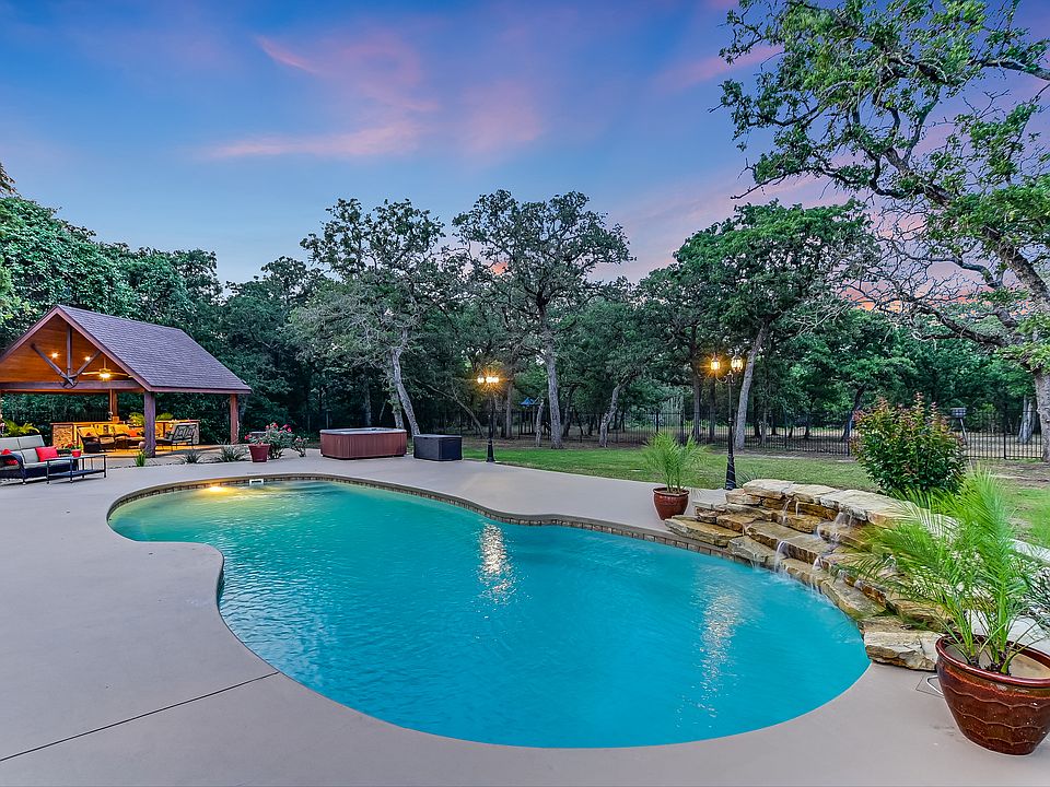 Estate Living in La Reata Ranch! ~ Beautiful custom limestone home in the desirable community of La Reata Ranch. An impressive gated entrance leads to a wooded setting of 5 acres of Loblolly pines, oaks and cedars. The home includes two primary suites plus 3 additional secondary bedrooms to provide options for large or multi-generational families. One of the unique features of this home is the double island which is perfect for entertaining as a serving buffet or additional breakfast bar seating. The living room, kitchen and breakfast room have the sought-after open floor plan. In addition to these dining options, there is a spacious formal dining room. The breathtaking outdoor living oasis is complete with a covered porch, welcoming pool with waterfall, hot tub, fire pit and a covered pavilion with an outdoor kitchen, which includes a built-in BBQ griddle, fridge and shaded seating area. The front and fenced backyard are irrigated. In addition to the 3 car attached garage, there is a 2 car detached garage which is insulated and could serve as a workshop, studio or bonus room. There is also a storage shed for lawn equipment. Full RV hook-ups are available with 50 amp electrical, septic and water. La Reata Ranch is conveniently located within 45 minutes of Austin, ABIA and less than 2 hours from Houston and San Antonio. Bastrop and Smithville are 15 minutes away! Easy commute to Tesla, Space-X, The Boring Company, Samsung, Hyatt Lost Pines or COTA.