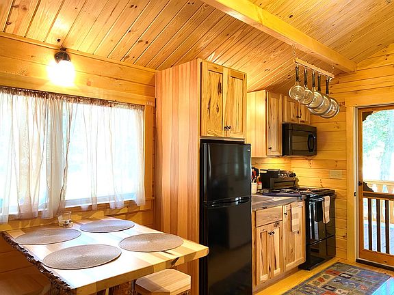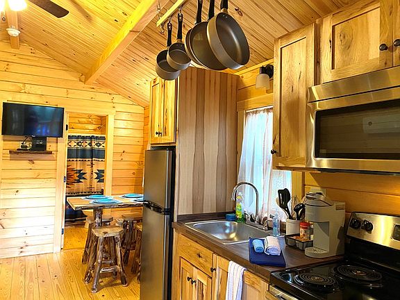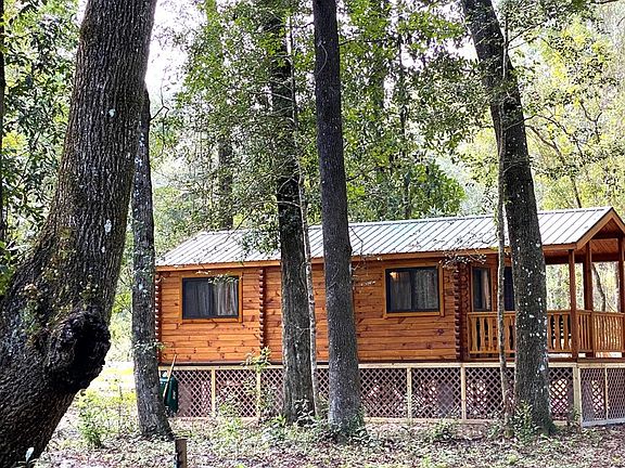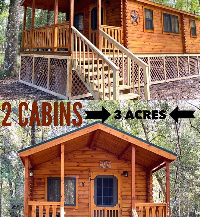 GET TWO Brand New Amish Made Cabins on 3/acres with proven income potential in area. These oversized "tiny homes" are totally TURN-KEY & perfect for rental units, hunting/fishing vacation cabins or a permanent home for the "minimalist". Choose to stay in a wildlife or western themed cabin. Beautiful tongue & groove yellow pine floor boards & cathedral ceiling, solid pine doors, ceiling fans, metal roof & sliding insulated windows. Fully equipped mini kitchen has hickory cabinets, countertop & backsplash, frig, stove & microwave, plus a breakfast bar. COMPLETELY FURNISHED w/bunks, queen bed, sofa, tv & more! Enjoy PRIVATE ACCESS to THREE RIVERS, the SANTA FE, ICHETUCKNEE, & SUWANNEE RIVER, AND just a 10-12 minute drive to GINNIE SPRINGS.